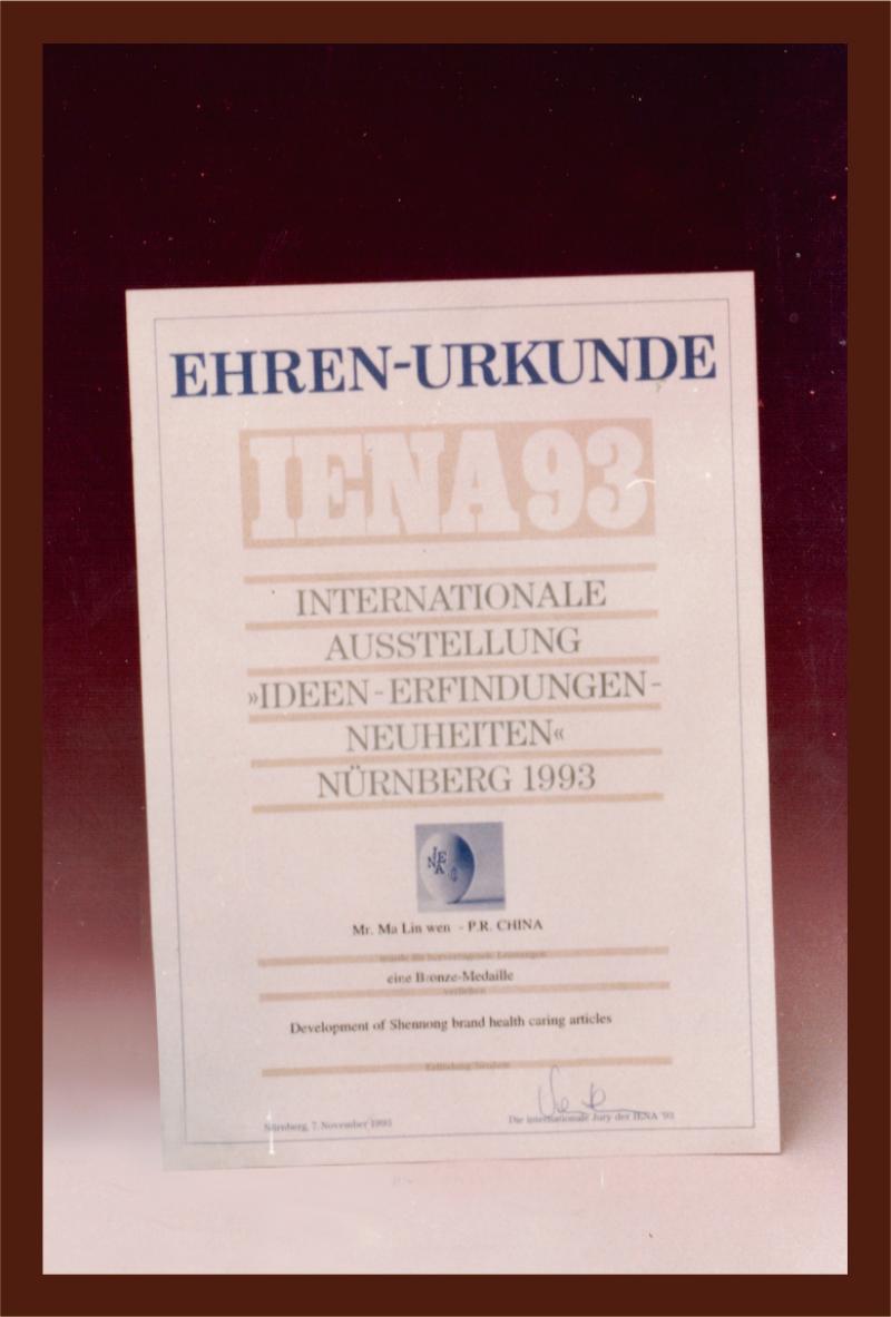 神農藥枕榮獲1993德國紐倫堡新思維發明獎