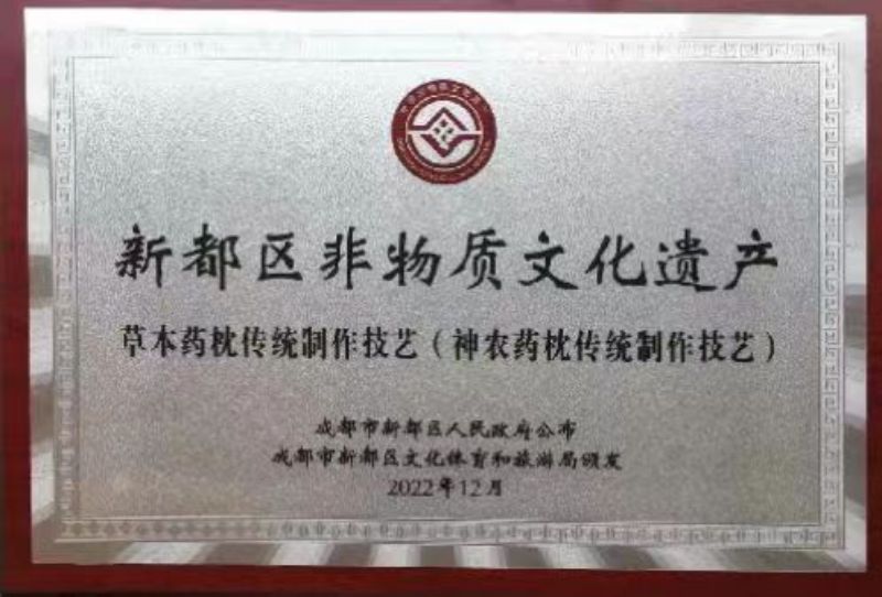 2022年12月,【神農(nóng)藥枕傳統(tǒng)制作技藝】入選新都區(qū)非物質(zhì)文化遺產(chǎn)。目前,該項目市級非物質(zhì)文化遺產(chǎn)評定工作正在推進中。
